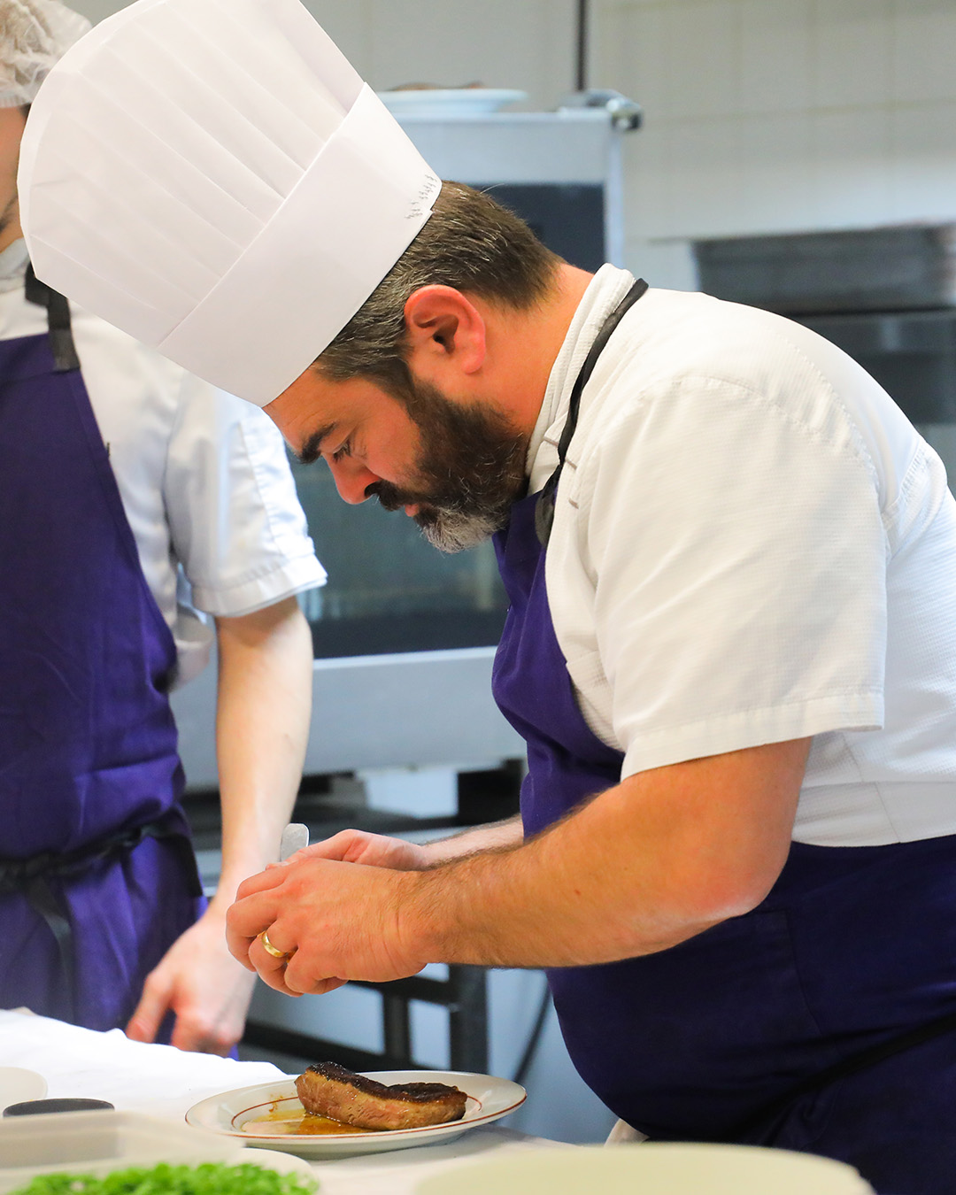 Côté cuisine, le Chef Paul Courtaux a été formé au lycée hôtelier de Saint-Chély-d’Apcher. Il entame son parcours au Chandelier à Montpellier, avant de s’envoler vers les cuisines du Ritz à Paris. À 21 ans, il décroche une étoile au restaurant La Chaldette et poursuit sa carrière à L’Entre Pots à Pézenas. C’est avec l’envie d’affirmer sa propre identité culinaire qu’il va créer – avec Hélène, sa femme – le restaurant Le Saint Georges à Palavas-les-flots.
